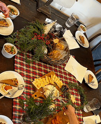 Our special festive menu features Christmas stew with roasted veggies, gingerbread vegan cheesecake, chewy brownies, hot apple cider, and more. We’ll be serving both lunch and dinner and in the evening, the bar will be open with drinks and snacks.