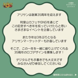 アリサン35周年記念 ロゴデザインコンテスト開催!