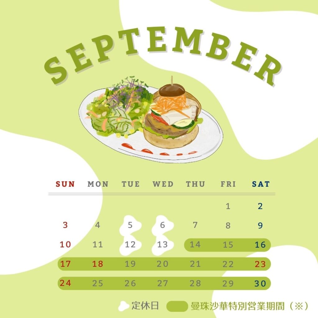 ※曼珠沙華特別営業期間中は基本的に毎日営業しますが、天候や花の咲き具合によって休業とする場合がございます。ご来店前に確認したい場合は、カフェ(042-982-4823)までご連絡ください。