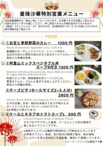 曼珠沙華特別営業のお知らせ