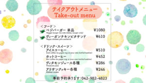 8月15日(日)11:30-18:00 テイクアウトメニューのみ
